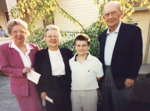 Adam was her only grandchild and literally the light of her life. For the first five years after he was born, she drove the 6 hours from western Kentucky to visit, but hated being away from her house. After a particularly difficult drive back in a snowstorm, and with Keith’s brother Alan moving away, she made the hard decision to leave her snug little home with all her memories and move into a new house overlooking a pond a few miles from us. I was frankly worried about having her so close – now she would see how we really lived! – but she was always careful to allow us our privacy and was never critical of me. Adam loved having Nanny close by to spoil him and they had a special relationship. She loved him totally and unconditonally. She would often say, “My friends think their grandchildren are smart and cute, but Adam really is the smartest!”  He was 14 when she died and when he got his license a few years later, he wished he could have taken her for a drive. “Nanny would have loved that.”