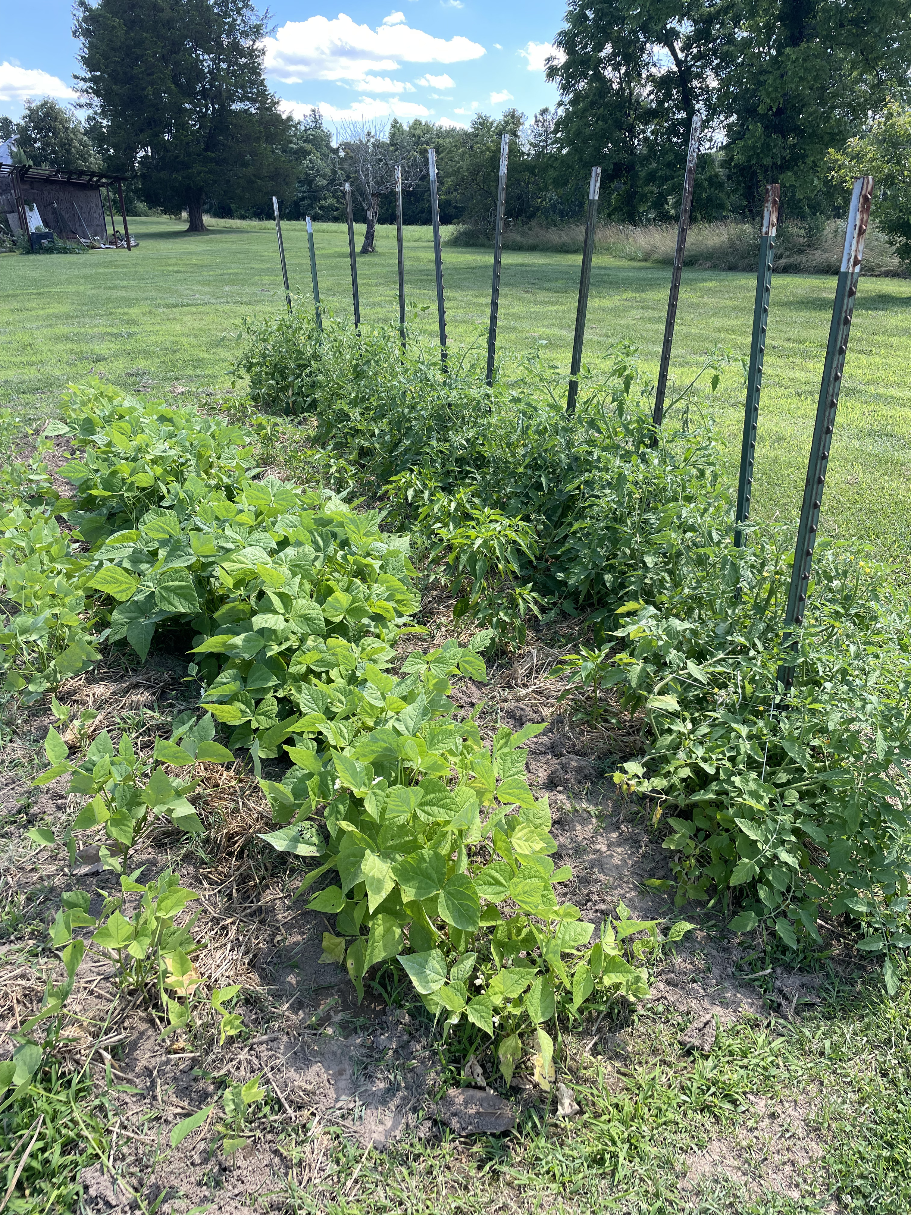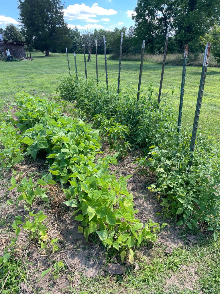 I finished the short row of butterbeans and started on the green beans, blue lake variety because we don’t like to deal with stringy beans. Few cars come down our country lane at mid morning, and all was quiet. Far off I could hear the train whistle, and way off across the pasture an owl gave a faint whooo. I leaned on my hoe and listened, wondering if these were the same sounds women have heard in our little piece of the valley for the last 160 years, weeding their vegetable gardens on a June morning. I imagined myself in a long skirt and straw hat instead of my shorts and ballcap— how hot that must have been!