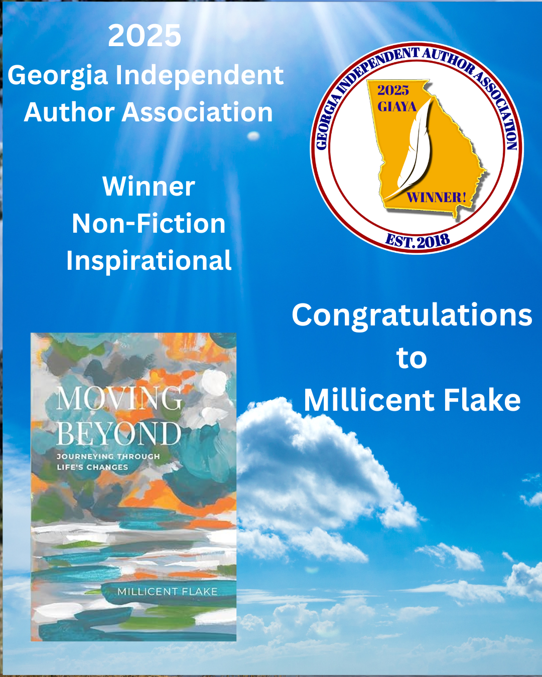 Last spring I entered a contest sponsored by the Georgia Independent Author Association and my book, Moving Beyond: Journeying through Life’s Changes, was the winner in the non-fiction inspirational category! Thank you to the committee members and to everyone who has continued to buy and share it!