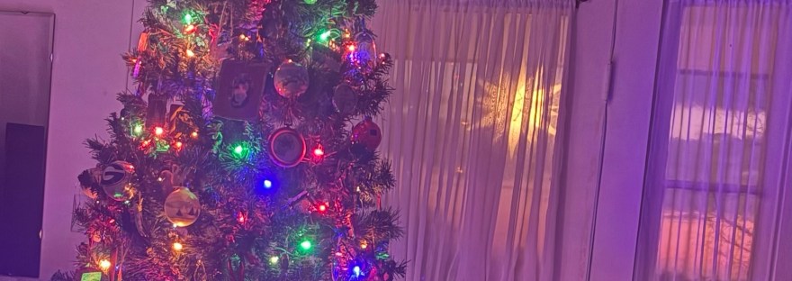 I sit in front of the Christmas tree early on New Year’s Day. Through the front windows I watch the sun coming up over the tree line of the Browns’ pasture, orange and blue. My Moravian star shines over the porch, moving slightly in the wind, a reminder of my North Carolina roots.